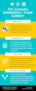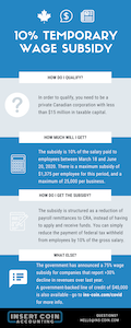 This new 75% wage subsidy does not replace the 10% Temporary Wage Subsidy that was announced earlier, which is described below. Any subsidy you received under the 10% TWS will reduce the CEWS that you will get. If you don't qualify for the CEWS, you may still eligible for the 10% Temporary Wage Subsidy.